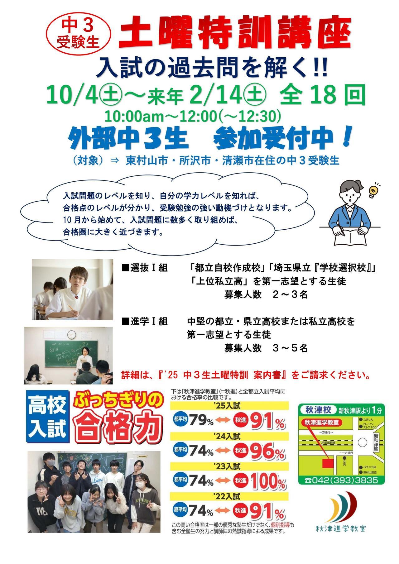 東村山市、清瀬市、所沢市で進学塾・学習塾・個別指導塾をお探しなら、「新秋津駅」から徒歩1分の「秋津進学教室」まで